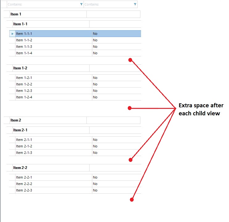 I am having trouble removing the blank space between hierarchies / childviews when using the RadVirtualGrid to display hierarchical data.