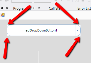 public partial class Form1 : Form{ public Form1() { InitializeComponent(); this.BackColor = Color.Yellow; this.radDropDownButton2.DropDownButtonElement.ArrowButtonMinSize = new System.Drawing.Size(50, 0); RoundRectShape actionButtonShape = new RoundRectShape(); actionButtonShape.BottomLeftRounded = true; actionButtonShape.BottomRightRounded = false; actionButtonShape.TopLeftRounded = true; actionButtonShape.TopRightRounded = false; actionButtonShape.Radius = 22; this.radDropDownButton2.DropDownButtonElement.ActionButton.Shape = actionButtonShape; RoundRectShape arrowButtonShape = new RoundRectShape(); arrowButtonShape.BottomLeftRounded = false; arrowButtonShape.BottomRightRounded = true; arrowButtonShape.TopLeftRounded = false; arrowButtonShape.TopRightRounded = true; arrowButtonShape.Radius = 22; this.radDropDownButton2.DropDownButtonElement.ArrowButton.Shape = arrowButtonShape; RoundRectShape shape = new RoundRectShape(); shape.BottomLeftRounded = true; shape.BottomRightRounded = true; shape.TopLeftRounded = true; shape.TopRightRounded = true; shape.Radius = 22; this.radDropDownButton2.DropDownButtonElement.BorderElement.Shape = shape; }}I am also sending you a screenshot how the buttons look on my side.