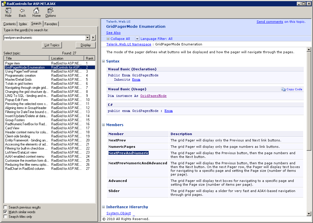 Please update your documentation (or code) to agree with one another. This is an annoying problem since the documentation claims NextPrevAndNumeric work differently than they actually do..(BTW, I am using the latest version 2010.1.530.35)