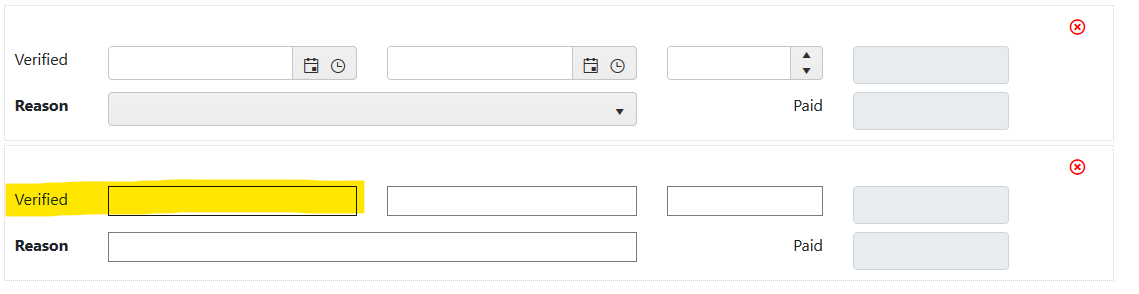 <div class="col-12 col-md-3 col-lg-3 col-xl-3 order-1"> <span style="" class="k-widget k-datetimepicker w-100"><span class="k-picker-wrap k-state-default"><input id="MyCollection[0].StartDateTime" class="w-100 k-input" title="Start" name="MyCollection[0].StartDateTime" type="text" value="" data-role="datetimepicker" style="width: 100%;" role="combobox" aria-expanded="false" autocomplete="off" aria-disabled="false"><span unselectable="on" class="k-select"><span class="k-link k-link-date" aria-label="Open the date view" aria-controls="MyCollection[0].StartDateTime_dateview"><span unselectable="on" class="k-icon k-i-calendar"></span></span><span class="k-link k-link-time" aria-label="Open the time view" aria-controls="MyCollection[0].StartDateTime_timeview"><span unselectable="on" class="k-icon k-i-clock"></span></span></span></span></span><script>kendo.syncReady(function(){jQuery("#MyCollection\\[0\\]\\.StartDateTime").kendoDateTimePicker({"format":"{0:g}"});});</script> <span class="text-danger field-validation-valid" data-valmsg-for="StartDateTime" data-valmsg-replace="true"></span> </div>...other code omitted for brevity...<div class="col-12 col-md-3 col-lg-3 col-xl-3 order-1"> <input id="MyCollection[1].StartDateTime" class="w-100" title="Start" name="MyCollection[1].StartDateTime" type="text" value=""><script>kendo.syncReady(function(){jQuery("#MyCollection\\[1\\]\\.StartDateTime").kendoDateTimePicker({"format":"{0:g}"});});</script> <span class="text-danger field-validation-valid" data-valmsg-for="StartDateTime" data-valmsg-replace="true"></span> </div>