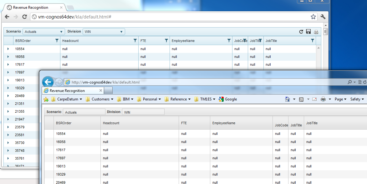 I have created several drop downs and grids in a page, but notice that there is a significant difference between IE and Chrome. Namely, the filters do not show in IE, adn the drop downs don't look rounded like they do in Chrome.