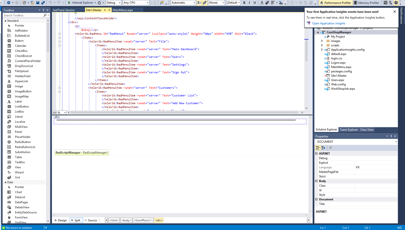 VS2013 Professional designer is not showing anything Telerik correctly.