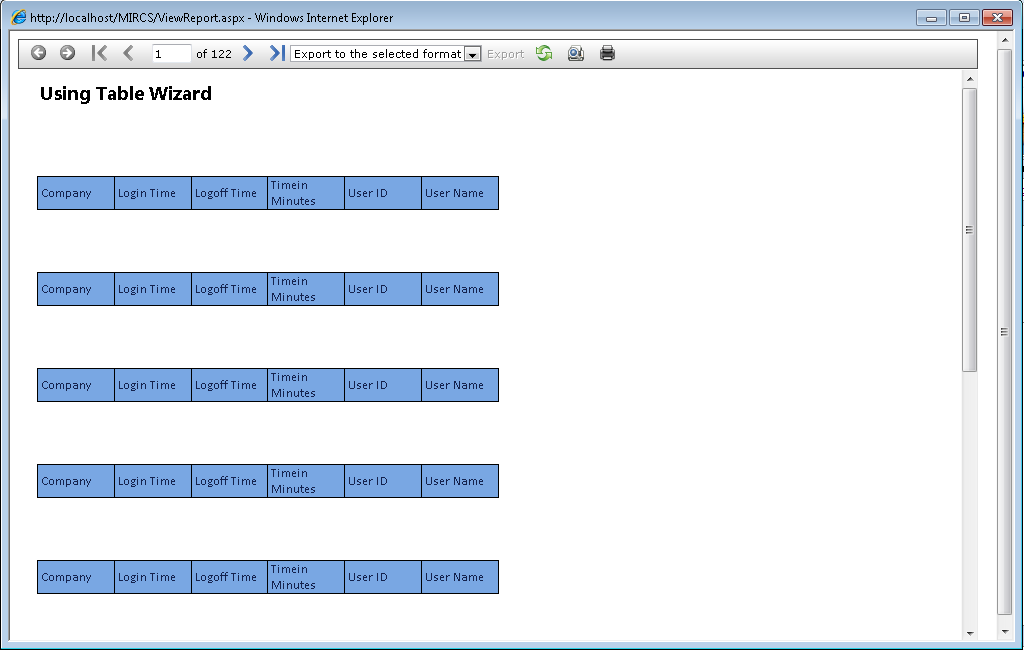 I am trying to create simple tabular report using telerik report wizard. When the wizard is finished it place a table in detail section with the values and headers of properties selected by me, earlier. When i try to run the report, it shows nothing but the header repeating itself. I tried to create the same report using Blank Report, but it also gave me same result. Though there is a twist, Once i create a Blank Report, bind it with same dataset and this time i ​drag and drop only the value fields to the detail section, i run the report and this time it shows data correctly. I have searched for this issue on your forums, tried some suggestion but none worked. I have attached both of the screenshots. I am trying to view this report on IE 8 and IE 9 as the project for which we want to purchase telerik reporting offers compatibility with IE 8 and IE 9. Please advise me the point i am missing.