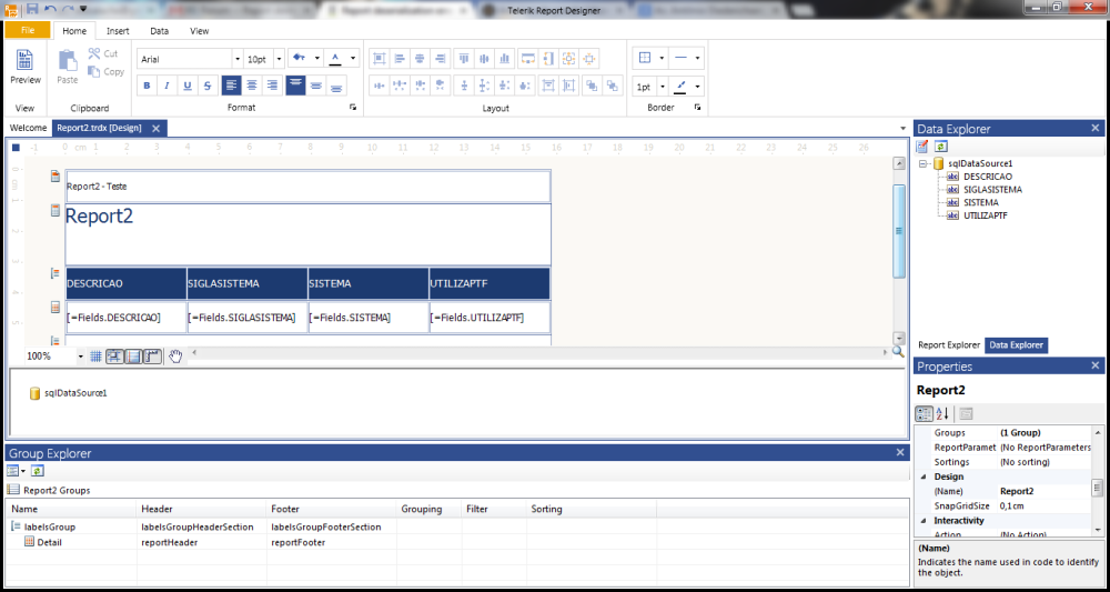<?xml version="1.0" encoding="utf-8"?> <Report Width="6.5in" Name="TempTables" SnapGridSize="0.1in" xmlns="http://schemas.telerik.com/reporting/2012/3.3"> <Items> <DetailSection Height="0.800000031789144in" Name="detailSection1"> <Items> <TextBox Width="1.19999996821086in" Height="0.400000095367432in" Left="0.199999968210856in" Top="0.199999968210856in" Value="test2" Name="textBox1" /> </Items> </DetailSection> </Items> <StyleSheet> <StyleRule> <Style> <Padding Left="2pt" Right="2pt" /> </Style> <Selectors> <TypeSelector Type="TextItemBase" /> <TypeSelector Type="HtmlTextBox" /> </Selectors> </StyleRule> </StyleSheet> <PageSettings> <PageSettings PaperKind="Letter" Landscape="False"> <Margins> <MarginsU Left="1in" Right="1in" Top="1in" Bottom="1in" /> </Margins> </PageSettings> </PageSettings> </Report>Regards