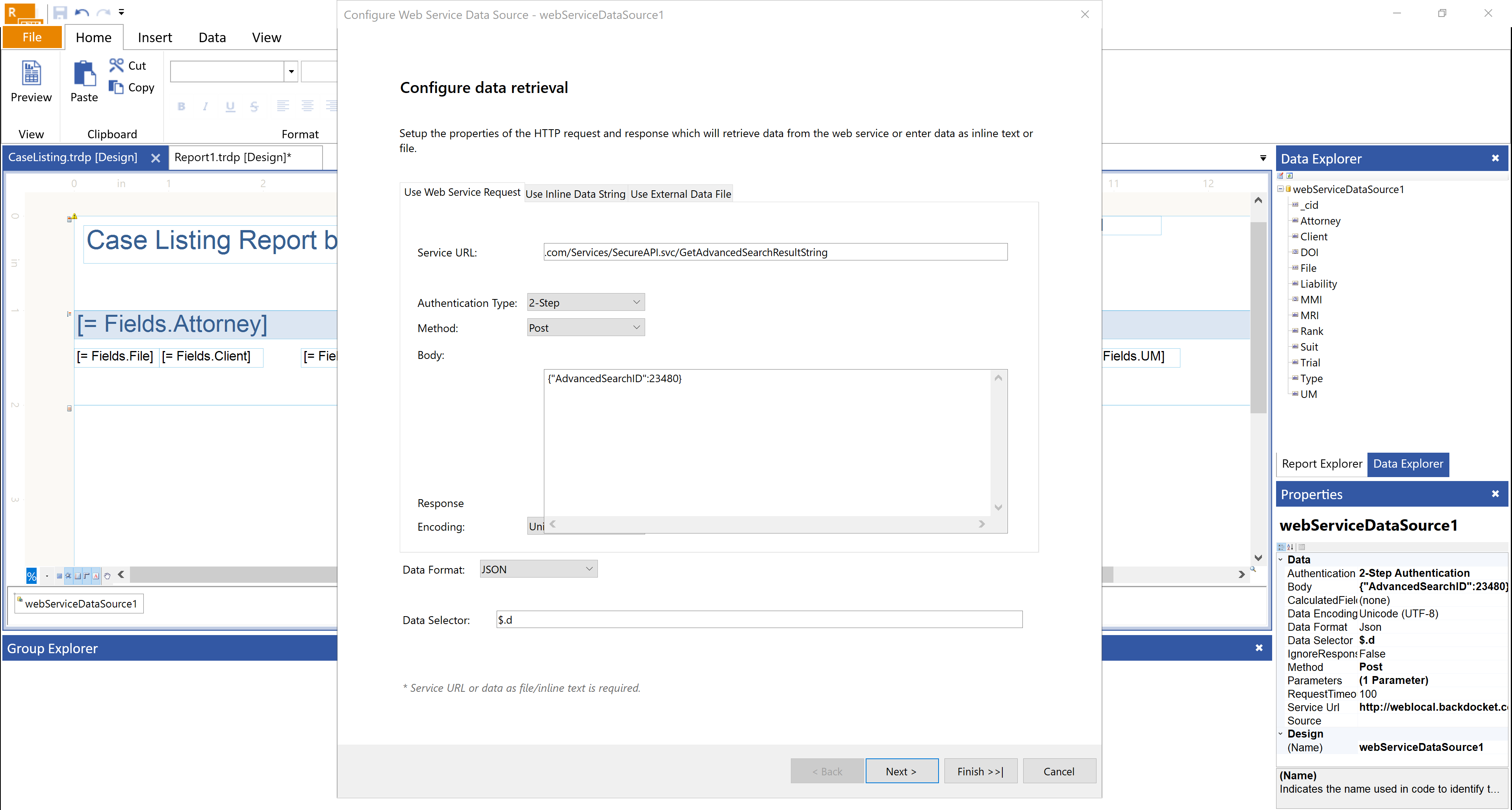 When running the report designer (VS or standalone) on a display with high resolution DPI (in this case 2880/1400 with windows scaling fonts to 200%), the dialogs do not scale properly. Other applications are ok. I have not tested all the dialogs, but the data source dialogs are particularly problematic, I attach a screen shot.