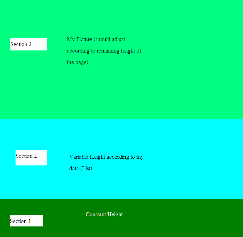 Section 2 - It will vary its height according to list of data (Above section 1)