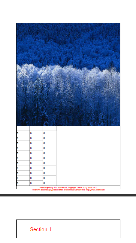 private void InitializeComponent() { Telerik.Reporting.TableGroup tableGroup1 = new Telerik.Reporting.TableGroup(); Telerik.Reporting.TableGroup tableGroup2 = new Telerik.Reporting.TableGroup(); Telerik.Reporting.TableGroup tableGroup3 = new Telerik.Reporting.TableGroup(); Telerik.Reporting.TableGroup tableGroup4 = new Telerik.Reporting.TableGroup(); System.ComponentModel.ComponentResourceManager resources = new System.ComponentModel.ComponentResourceManager(typeof(Report1)); Telerik.Reporting.Drawing.TextWatermark textWatermark1 = new Telerik.Reporting.Drawing.TextWatermark(); Telerik.Reporting.Drawing.StyleRule styleRule1 = new Telerik.Reporting.Drawing.StyleRule(); this.textBox1 = new Telerik.Reporting.TextBox(); this.textBox3 = new Telerik.Reporting.TextBox(); this.textBox4 = new Telerik.Reporting.TextBox(); this.pageHeaderSection1 = new Telerik.Reporting.PageHeaderSection(); this.detail = new Telerik.Reporting.DetailSection(); this.panel11 = new Telerik.Reporting.Panel(); this.pictureBox2 = new Telerik.Reporting.PictureBox(); this.panel2 = new Telerik.Reporting.Panel(); this.table1 = new Telerik.Reporting.Table(); this.textBox5 = new Telerik.Reporting.TextBox(); this.textBox6 = new Telerik.Reporting.TextBox(); this.textBox7 = new Telerik.Reporting.TextBox(); this.pageFooterSection1 = new Telerik.Reporting.PageFooterSection(); this.panel1 = new Telerik.Reporting.Panel(); this.pictureBox1 = new Telerik.Reporting.PictureBox(); ((System.ComponentModel.ISupportInitialize)(this)).BeginInit(); // // textBox1 // this.textBox1.Name = "textBox1"; this.textBox1.Size = new Telerik.Reporting.Drawing.SizeU(Telerik.Reporting.Drawing.Unit.Inch(0.79998695850372314D), Telerik.Reporting.Drawing.Unit.Inch(0.29996046423912048D)); this.textBox1.Style.BorderStyle.Default = Telerik.Reporting.Drawing.BorderType.Solid; this.textBox1.Style.VerticalAlign = Telerik.Reporting.Drawing.VerticalAlign.Middle; // // textBox3 // this.textBox3.Name = "textBox3"; this.textBox3.Size = new Telerik.Reporting.Drawing.SizeU(Telerik.Reporting.Drawing.Unit.Inch(0.79998695850372314D), Telerik.Reporting.Drawing.Unit.Inch(0.29996046423912048D)); this.textBox3.Style.BorderStyle.Default = Telerik.Reporting.Drawing.BorderType.Solid; this.textBox3.Style.BorderStyle.Left = Telerik.Reporting.Drawing.BorderType.None; this.textBox3.Style.VerticalAlign = Telerik.Reporting.Drawing.VerticalAlign.Middle; // // textBox4 // this.textBox4.Name = "textBox4"; this.textBox4.Size = new Telerik.Reporting.Drawing.SizeU(Telerik.Reporting.Drawing.Unit.Inch(0.79998695850372314D), Telerik.Reporting.Drawing.Unit.Inch(0.29996046423912048D)); this.textBox4.Style.BorderStyle.Default = Telerik.Reporting.Drawing.BorderType.Solid; this.textBox4.Style.BorderStyle.Left = Telerik.Reporting.Drawing.BorderType.None; this.textBox4.Style.VerticalAlign = Telerik.Reporting.Drawing.VerticalAlign.Middle; // // pageHeaderSection1 // this.pageHeaderSection1.Height = Telerik.Reporting.Drawing.Unit.Inch(0.3999999463558197D); this.pageHeaderSection1.Name = "pageHeaderSection1"; // // detail // this.detail.Height = Telerik.Reporting.Drawing.Unit.Inch(8.99375057220459D); this.detail.Items.AddRange(new Telerik.Reporting.ReportItemBase[] { this.panel11, this.panel2, this.panel1}); this.detail.Name = "detail"; this.detail.Style.BorderStyle.Default = Telerik.Reporting.Drawing.BorderType.Inset; // // panel11 // this.panel11.Docking = Telerik.Reporting.DockingStyle.Bottom; this.panel11.Items.AddRange(new Telerik.Reporting.ReportItemBase[] { this.pictureBox2}); this.panel11.Location = new Telerik.Reporting.Drawing.PointU(Telerik.Reporting.Drawing.Unit.Inch(0D), Telerik.Reporting.Drawing.Unit.Inch(7.8937506675720215D)); this.panel11.Name = "panel11"; this.panel11.Size = new Telerik.Reporting.Drawing.SizeU(Telerik.Reporting.Drawing.Unit.Inch(6.2676377296447754D), Telerik.Reporting.Drawing.Unit.Inch(1.1000001430511475D)); this.panel11.Style.BorderStyle.Default = Telerik.Reporting.Drawing.BorderType.Inset; // // pictureBox2 // this.pictureBox2.Location = new Telerik.Reporting.Drawing.PointU(Telerik.Reporting.Drawing.Unit.Inch(1.9999212026596069D), Telerik.Reporting.Drawing.Unit.Inch(1.1000001430511475D)); this.pictureBox2.Name = "pictureBox2"; this.pictureBox2.Size = new Telerik.Reporting.Drawing.SizeU(Telerik.Reporting.Drawing.Unit.Inch(0D), Telerik.Reporting.Drawing.Unit.Inch(0D)); // // panel2 // this.panel2.Docking = Telerik.Reporting.DockingStyle.Bottom; this.panel2.Items.AddRange(new Telerik.Reporting.ReportItemBase[] { this.table1}); this.panel2.Location = new Telerik.Reporting.Drawing.PointU(Telerik.Reporting.Drawing.Unit.Inch(0D), Telerik.Reporting.Drawing.Unit.Inch(7.2937493324279785D)); this.panel2.Name = "panel2"; this.panel2.Size = new Telerik.Reporting.Drawing.SizeU(Telerik.Reporting.Drawing.Unit.Inch(6.2676377296447754D), Telerik.Reporting.Drawing.Unit.Inch(0.600001335144043D)); this.panel2.Style.BorderStyle.Default = Telerik.Reporting.Drawing.BorderType.Inset; // // table1 // this.table1.Anchoring = Telerik.Reporting.AnchoringStyles.Top; this.table1.Bindings.Add(new Telerik.Reporting.Binding("DataSource", "=ReportItem.DataObject.ModesList")); this.table1.Body.Columns.Add(new Telerik.Reporting.TableBodyColumn(Telerik.Reporting.Drawing.Unit.Inch(0.79998701810836792D))); this.table1.Body.Columns.Add(new Telerik.Reporting.TableBodyColumn(Telerik.Reporting.Drawing.Unit.Inch(0.79998701810836792D))); this.table1.Body.Columns.Add(new Telerik.Reporting.TableBodyColumn(Telerik.Reporting.Drawing.Unit.Inch(0.79998701810836792D))); this.table1.Body.Rows.Add(new Telerik.Reporting.TableBodyRow(Telerik.Reporting.Drawing.Unit.Inch(0.29996046423912048D))); this.table1.Body.SetCellContent(0, 0, this.textBox5); this.table1.Body.SetCellContent(0, 1, this.textBox6); this.table1.Body.SetCellContent(0, 2, this.textBox7); tableGroup1.ReportItem = this.textBox1; tableGroup2.ReportItem = this.textBox3; tableGroup3.ReportItem = this.textBox4; this.table1.ColumnGroups.Add(tableGroup1); this.table1.Colu