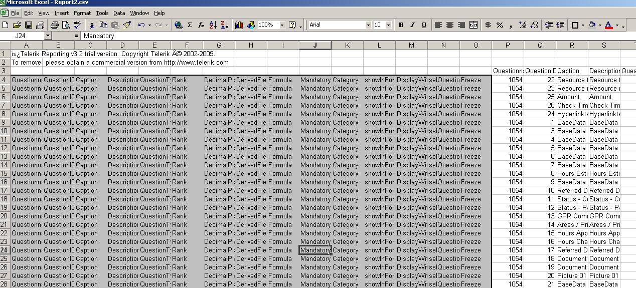 When I select export to CSV file using direct report viewer, csv file get generated but it has double number of columns.