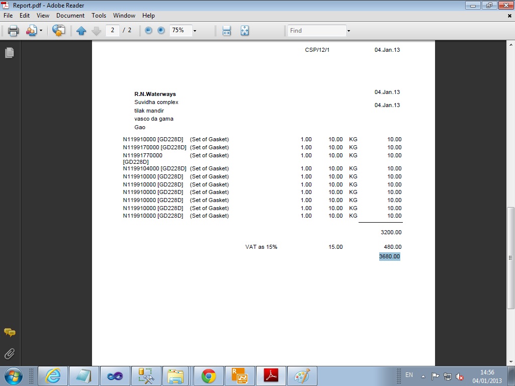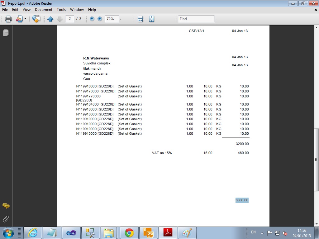 as shown in "report.jpg" i wanted to print total amount 3680 should appear at specified location i.e 16.4 cm below page start.