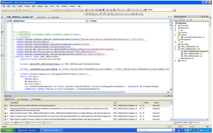 I am having an issue when trying to create a report, I am using the report wizard. The wizard itself works fine but after the report is generated I am getting over 80 or so build error and no report is shown. I attached a screen shot of one of the errors to which takes me to the .Designer.vb code.