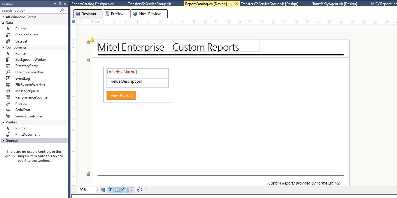 I am using a provided example of reporting , to create an interface listing the available reports in a DLL.