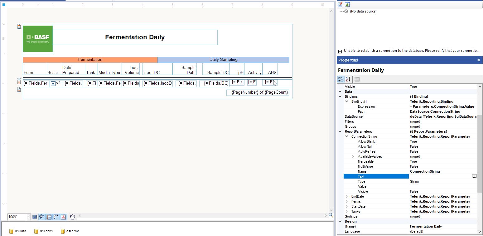 Thank you for the provided screenshots. From screen354d5c113436c415192104df209b47053.jpg, I noticed that you used the value of the parameter for the ConnectionString property of the SQL DataSource which is not allowed. For that reason, please, test removing it. The usage of the report parameter should happen only in the Binding, as you correctly did for the report.