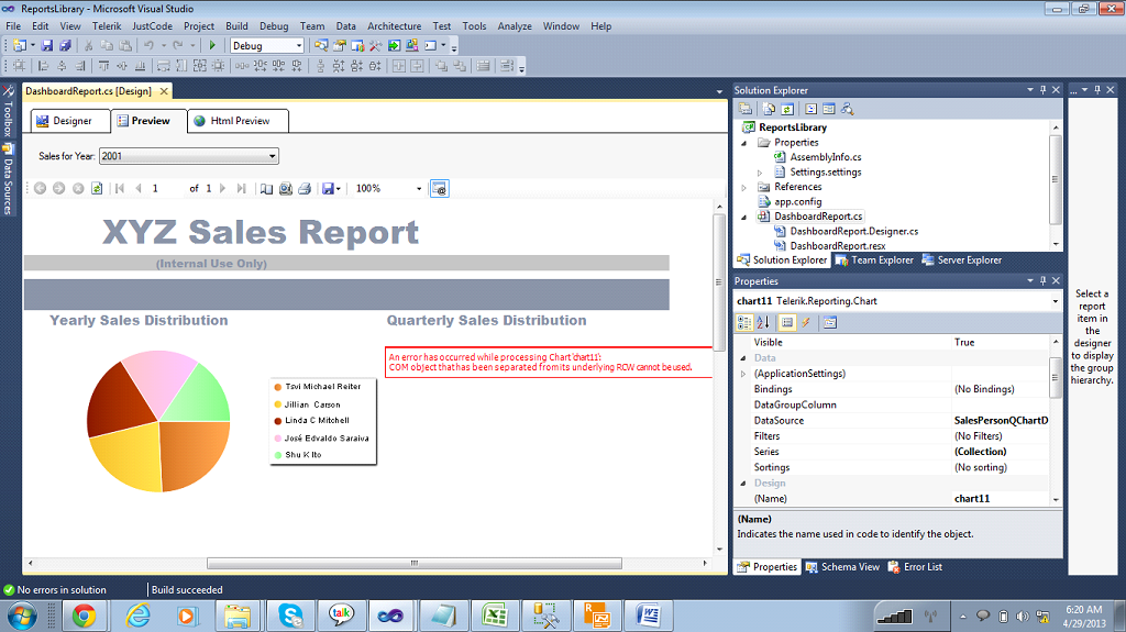 I am new to telerik view, I have been trying to learn it and followed the telerik video to design a Sales Dashboard Report.