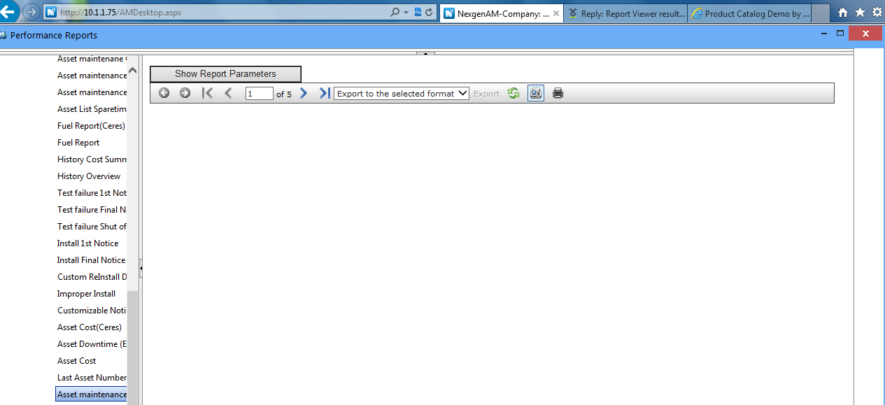 I have a similar issue. I am using Telerik reporting version 7.0.13.426 and browser is IE 10. Reports works fine when I run it in IE 10 but when I do compatibility view it just shows a blank page even though I can export to pdf or excel and see the entire report. Is there any particular reason for this? I have set height correctly and to all parent elements also in %. Any other browser combination is not giving an issue whether it is IE 9, IE 10 but IE 10 compatibility view is giving blank report. For some of our clients we do need to run this in compatibility view. You can check the attached image which shows IE 10 in compatibility mode but blank report and also 1-5 page numbers being shown on top. Please suggest.