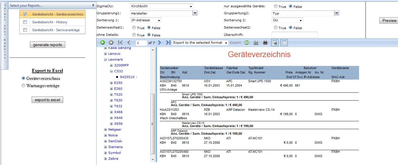 3.) the user can decide how to sort and group and can set some filters to the report.