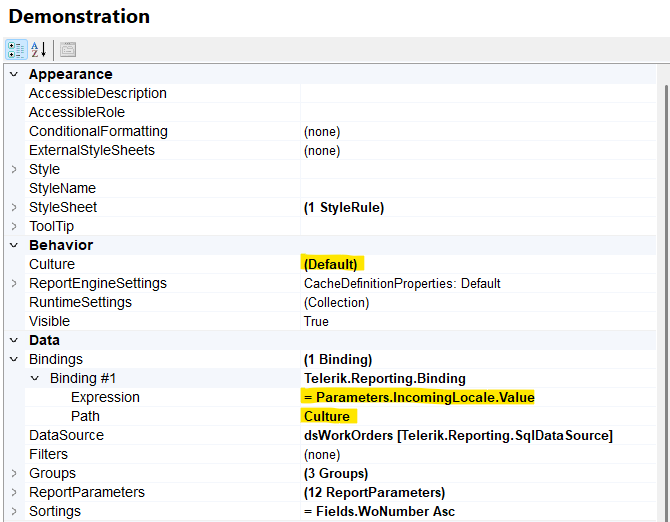 We have been running in a little bit of an issue. We have tried adding a binding to the report itself for culture to be linked to parameter but it wont change the culture of the report. We can set the binding on individual text boxes and it works fine. The other issue is from what we have found is that the culture of the report is supposed to be defaulted to the what the locale is for the computer that is running the report and we have a few international customers that are reporting that is not working.