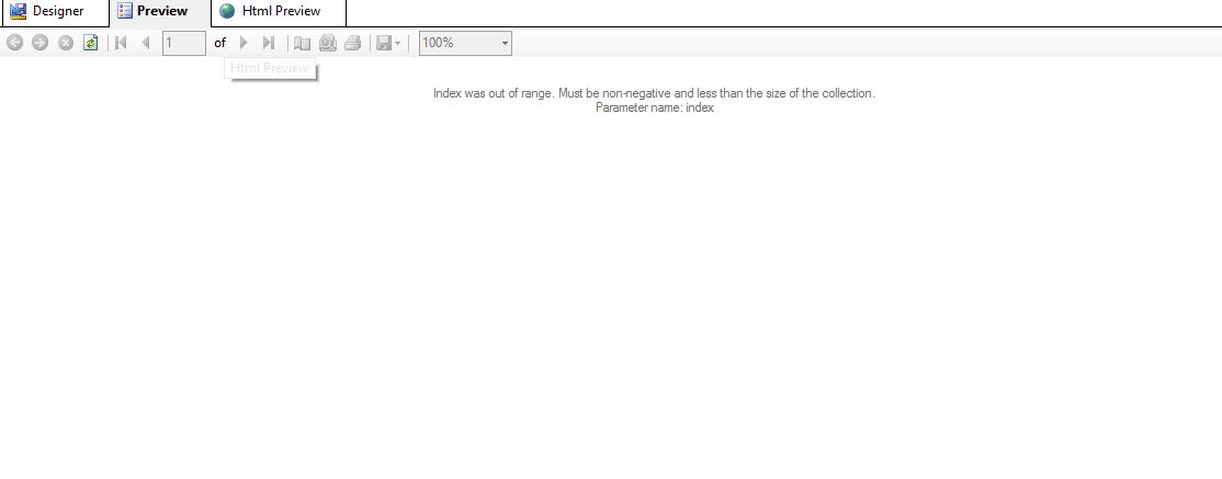 An error has occurred while rendering the report: System.ArgumentOutOfRangeException: Index was out of range. Must be non-negative and less than the size of the collection.