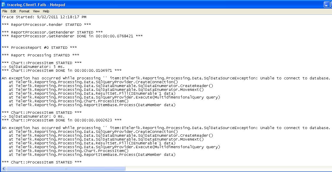A Telerik report with 4 chart controls connected by 4 different Telerik.Reporting.SQLDatasource