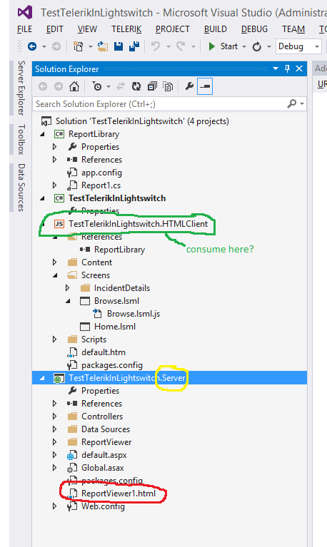 I have created a report viewer page in the 'server' element of the lightswitch html project, but how do I navigate/consume this within lightswitch? Please see the attached screenshot.