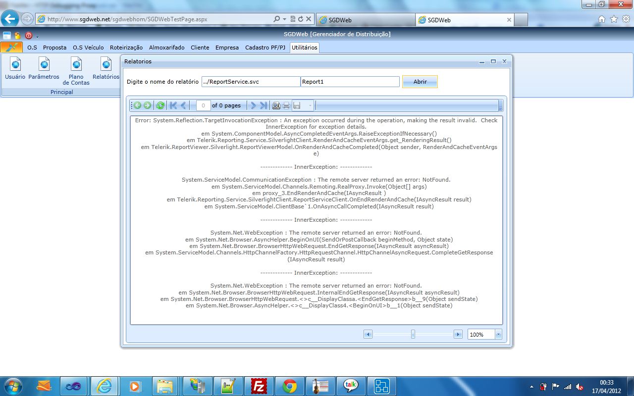 Error: System.Reflection.TargetInvocationException : An exception occurred during the operation, making the result invalid. Check InnerException for exception details. em System.ComponentModel.AsyncCompletedEventArgs.RaiseExceptionIfNecessary() em Telerik.Reporting.Service.SilverlightClient.ListRenderingExtensionsEventArgs.get_Extensions() em Telerik.ReportViewer.Silverlight.ReportViewerModel.OnListRenderingExtensionsCompleted(Object sender, ListRenderingExtensionsEventArgs e)------------- InnerException: -------------System.ServiceModel.CommunicationException : The remote server returned an error: NotFound. em System.ServiceModel.Channels.Remoting.RealProxy.Invoke(Object[] args) em proxy_3.EndListRenderingExtensions(IAsyncResult ) em Telerik.Reporting.Service.SilverlightClient.ReportServiceClient.OnEndListRenderingExtensions(IAsyncResult result) em System.ServiceModel.ClientBase`1.OnAsyncCallCompleted(IAsyncResult result)------------- InnerException: -------------System.Net.WebException : The remote server returned an error: NotFound. em System.Net.Browser.AsyncHelper.BeginOnUI(SendOrPostCallback beginMethod, Object state) em System.Net.Browser.BrowserHttpWebRequest.EndGetResponse(IAsyncResult asyncResult) em System.ServiceModel.Channels.HttpChannelFactory.HttpRequestChannel.HttpChannelAsyncRequest.CompleteGetResponse(IAsyncResult result)------------- InnerException: -------------System.Net.WebException : The remote server returned an error: NotFound. em System.Net.Browser.BrowserHttpWebRequest.InternalEndGetResponse(IAsyncResult asyncResult) em System.Net.Browser.BrowserHttpWebRequest.<>c__DisplayClassa.<EndGetResponse>b__9(Object sendState) em System.Net.Browser.AsyncHelper.<>c__DisplayClass4.<BeginOnUI>b__1(Object sendState)If i call the service directly on http://www.sgdweb.net/sgdweb/ReportService.svc it´s ok and the fiddler show the text in blue on service.jpg image.