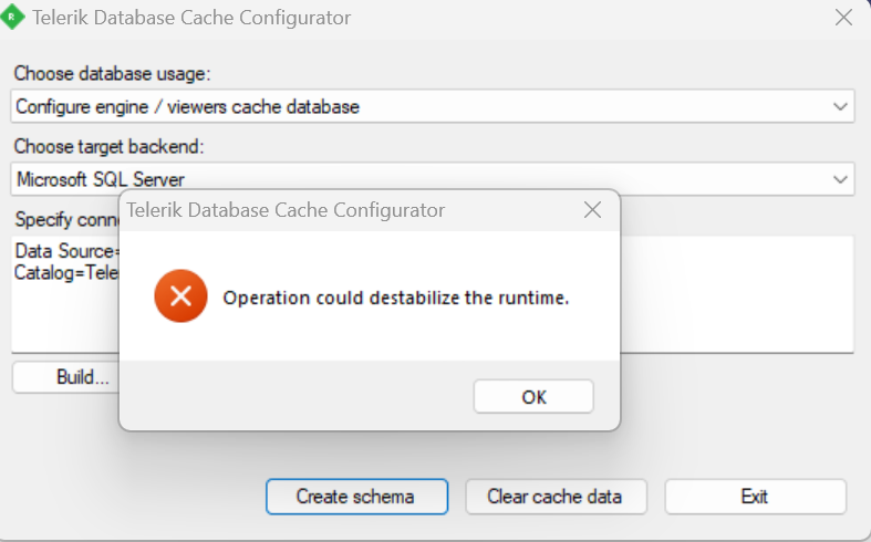 Tried few things like DatabaseCacheConfigurator.exe , but below error occurs .