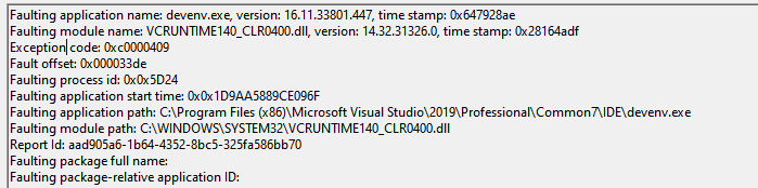 * Open the "Expression....". Visual Studio Crashes while showing the editor and shows the following: