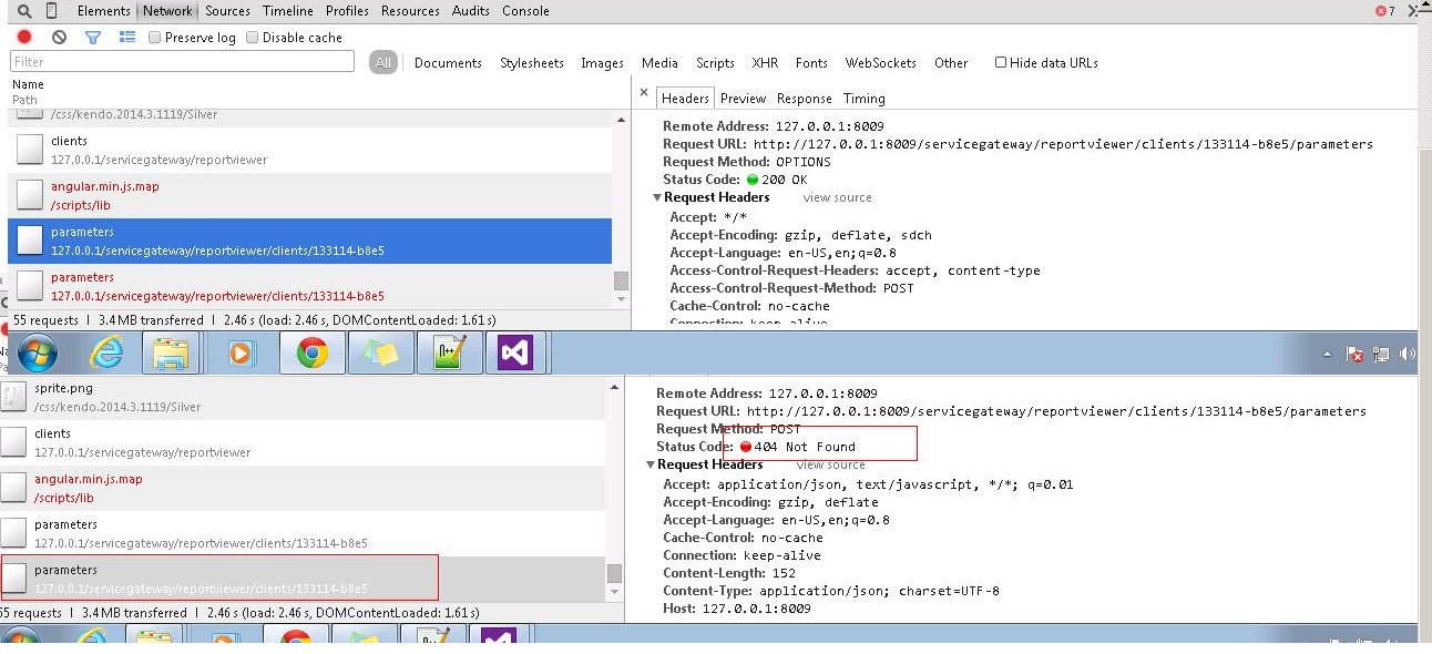 We have two applications one is asp.net mvc web application which will make call to asp.net web api to get telerik report data as rest api call, till now we are using asp.net in memory cache, now i am trying to store the cache in a shared path, below is the line of code that i updated after adding this all my api POST calls to ReportViewer controller are failing, I see there are two calls being made one is options call the other one is post call, options call is getting 200 as reponse but post is failing with status code 400, I can see some files getting created in shared path "C:\\TempReportCache", please see the attched screenshot "ApiCalls Status code to ReportViewer Api controller.jpg" which controls call trace and their response.