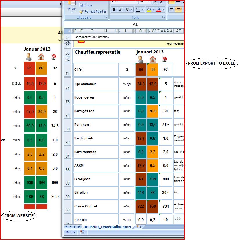 and we got another issue on same exported excel file. That is, report viewer has the following colors for RED, GREEN, YELLOW