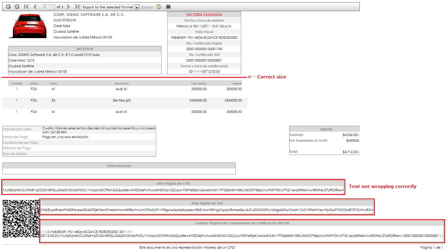 I have a telerik reportViewer in which i´m displaying an invoice preview before the client can save or print the PDF file, this invoice report contains a textbox in wich I display a very long encrypted string with no spaces in it, the problem comes when the reportviewer renders the report, this textbox grows horizontally and messes up the whole report, is like it´s not respecting the margins.