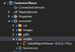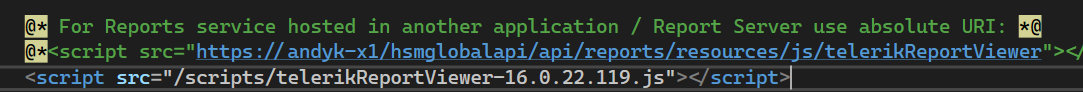 <script src="/api/reports/resources/js/telerikReportViewer"></script>2. Refer the file locally. You can find it in the installation folder of Telerik Reporting and copy it to the folder with scripts in your project: