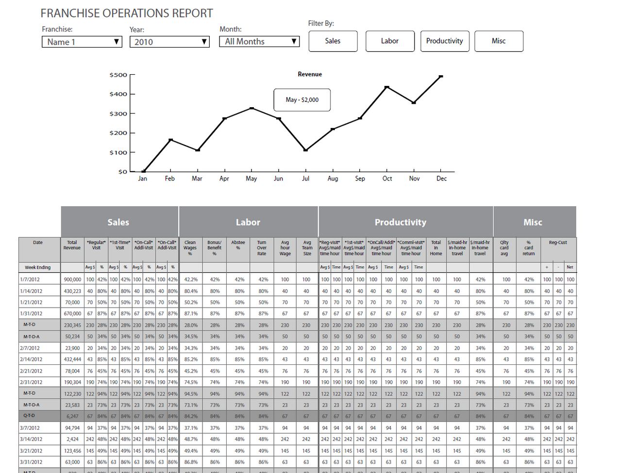I've attached relevant data model and wireframe of one report. I can't imagine that anyone would be able to understand how to map it without a detailed conversation. There are several pivots and intermediary calculations required.