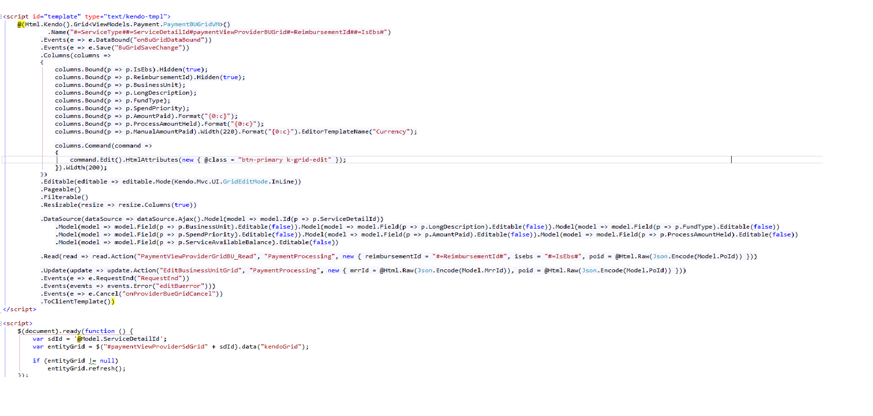 grid is in paymentviewgrid cshtml which is being called in the index page, below