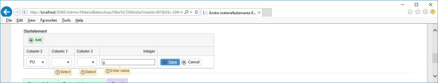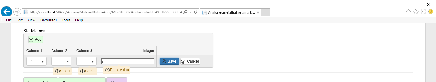 If I change the order of the first and the second column in the grid I get the selected value on the column called "Column2" and the validation error messages on the other columns (AfterSave2.png), so it seems as if the first column of the grid gets this behaviour.