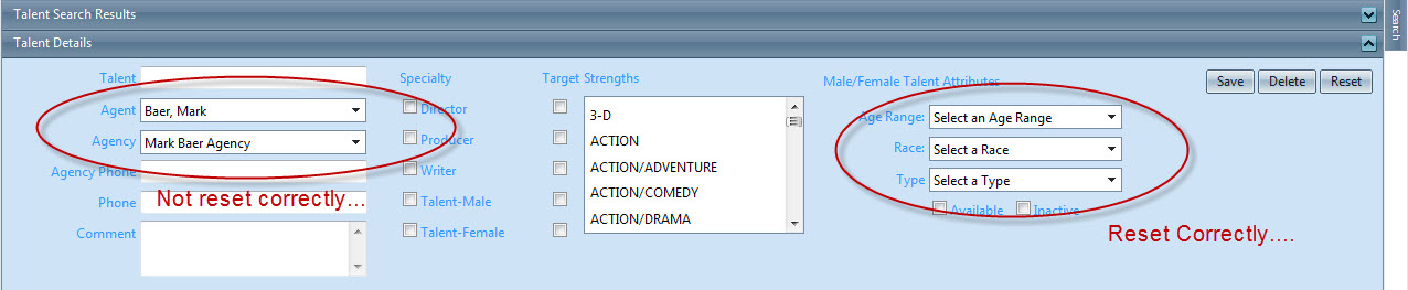 <P>cboAgencies.Text = null; //Also tried ""<BR>cboAgencies.SelectedValue = null;<BR>cboAgencies.ClearSelection();</P> <P><BR>cboAgents.Text = null;<BR>cboAgents.SelectedValue = null;<BR>cboAgents.ClearSelection();</P>