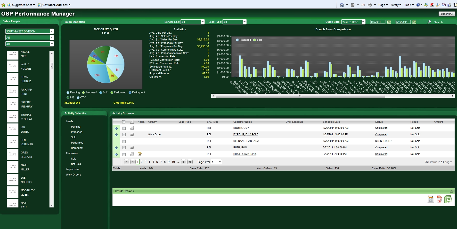 The drop down boxes are Division, region, branch. Upon choosing these it filters the employees to show.