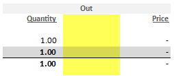 See attached examples. I want to hide the Cost Column on certain conditions, and have the width of "Out" be the size of Quantity + Price.
