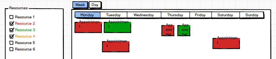I've implemented the ability to have the user select / deselect resources client side. Depending on the selection appointments are shown or not. My resources have some custom attributes (a color for example if more than one resource is selected) which I also need client side.