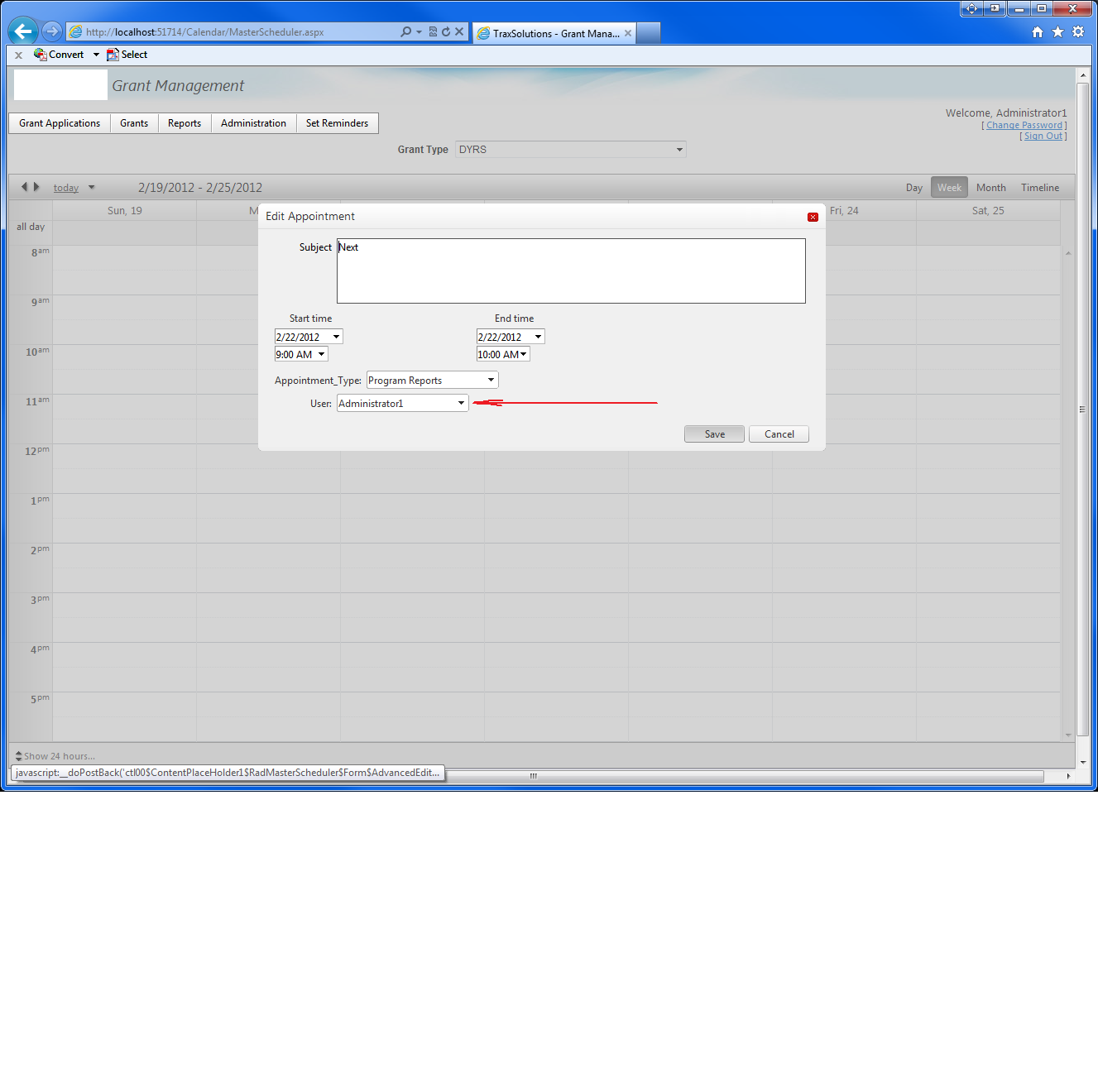 In that case, if the user dont select any resource and clicks submit, then a message should be displayed saying that "Please select...."(its like requiredfield validator) and also the appointment insertion should be cancelled.
