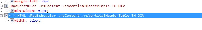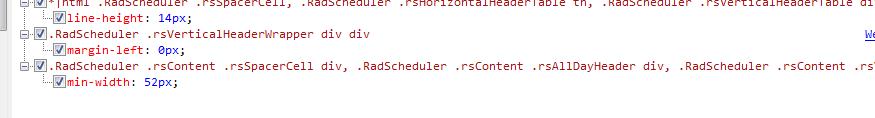 When using the scheduler within visual studio I have no problems at all. When I publish the project to the webserver the vertical resource headers don't expand. After some investigation it seems the style sheets are different. Please see screen shots. Any idea how to fix this? I've tried to incorporate some inline style, but without much luck.