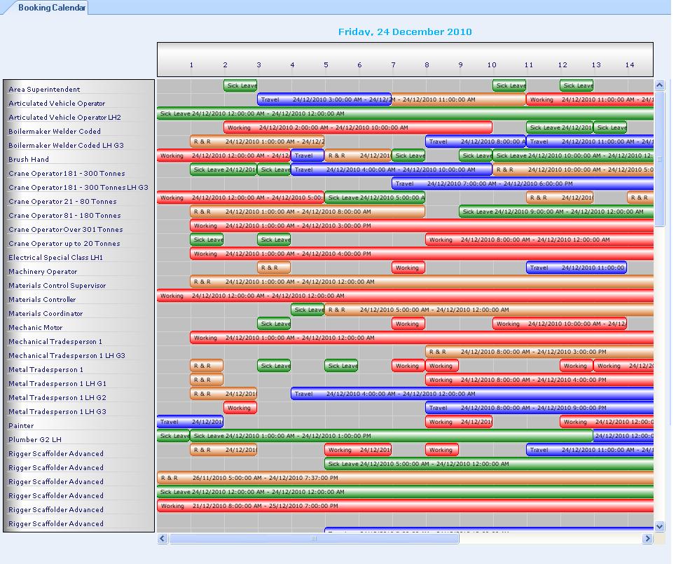 I have positions or vacancies as the vertical heading and horizontal heading as time of the day, which display a 24 hr day.