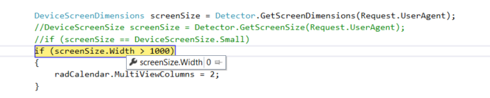 //DeviceScreenDimensions screenSize = Detector.GetScreenDimensions(Request.UserAgent);