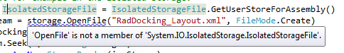 But is being applied on the object type IsolatedStorageFile sincerely had not used before, and this type of object that method (Open or OpenFile) does not exist.
