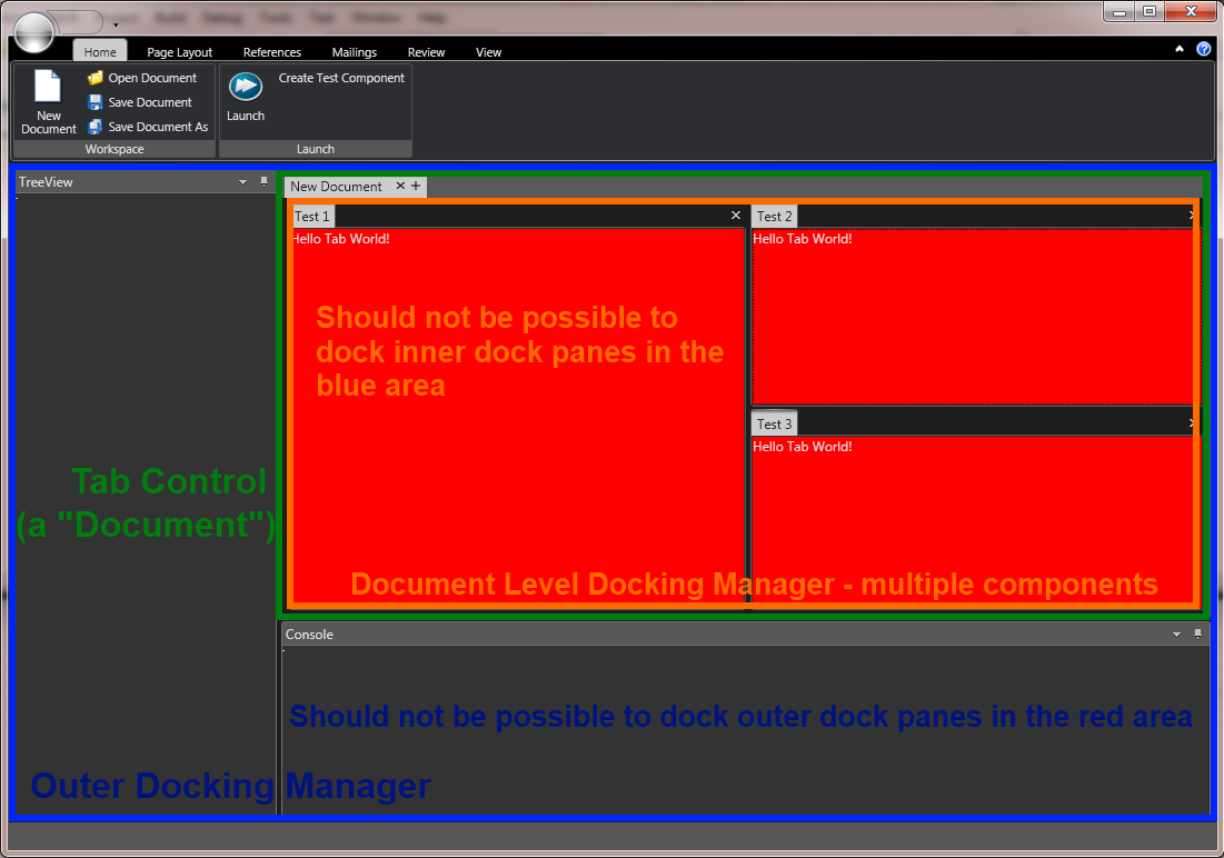 - Within each tabbed document, another docking manager, allowing multiple components to be positioned by the user