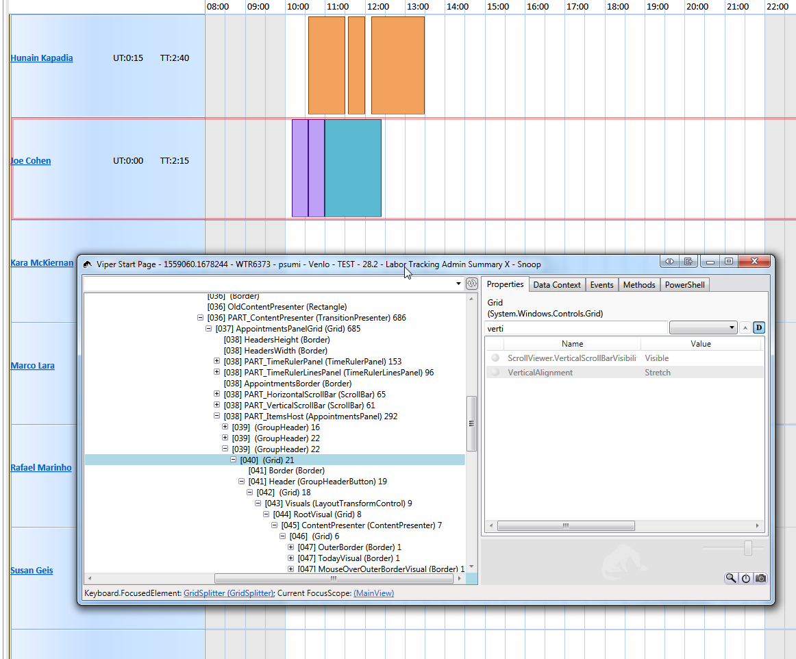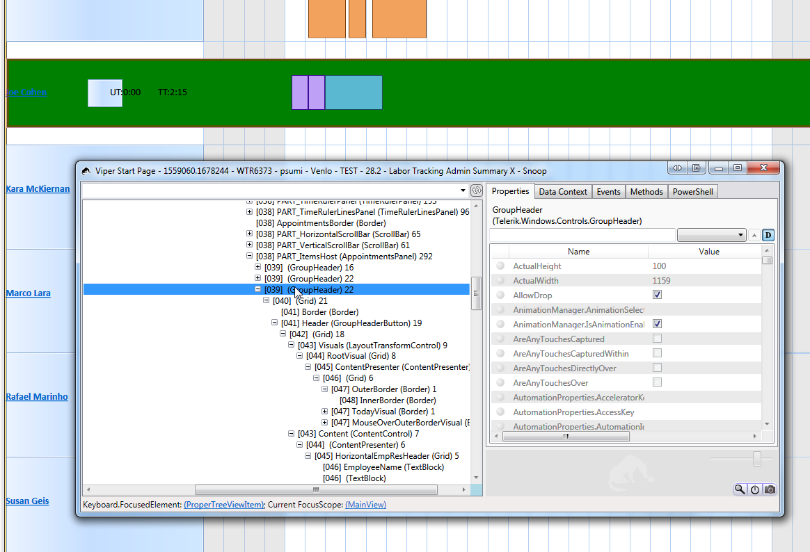 In order to simplify diagnosis, please check the second screenshot. I overwrote the height of all elements in the style, including the groupheader (green background). Basically, that GroupHeader doesn't have a parent anymore, it's just part of it's parent (AppointmentsPanel). I assume that parent stretches content, which I something I'd rather not have as it screws the layout.