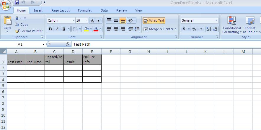 Please find my code below which i am using to generate result in excel file and also find attached screenshot of excel file what i am expecting to generate from this code this file has the same as generated from Telerik Test Result --> Save as Excel format