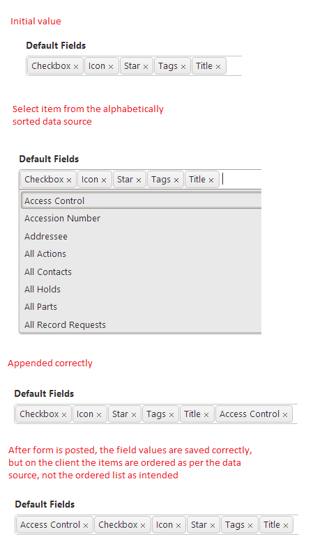 Make the widget reorder the DOM multi select entries.
