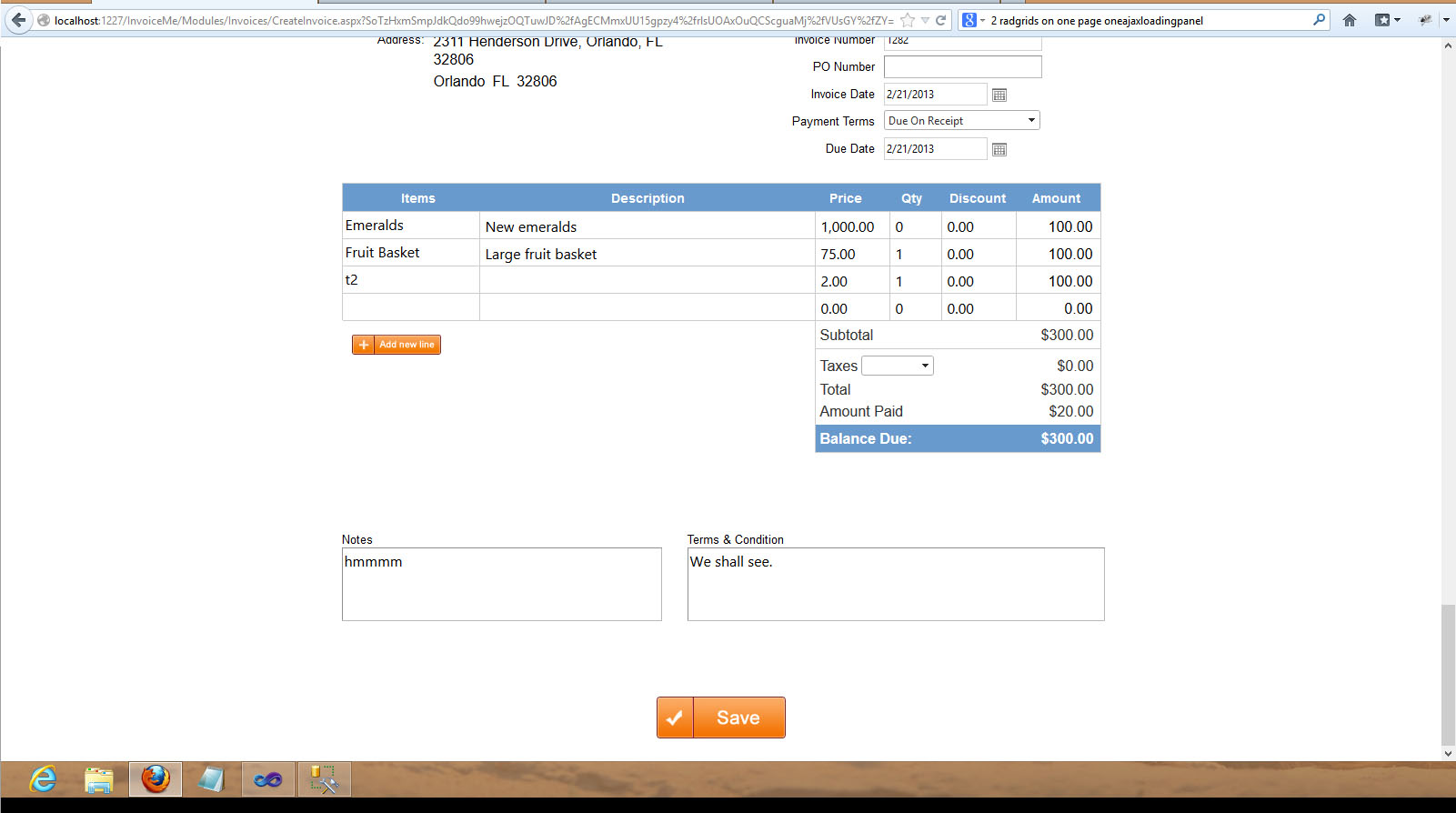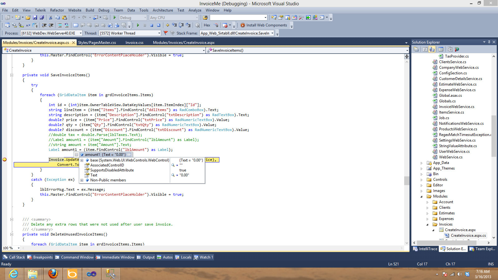 I've attached a screen shot of the grid along with a screen shot of the on click event code. On click there's a saveInvoiceItem() method thats executed first which loops through the grid and save each column of each row to a separate table. I'm able to get the values for all column expect the amount column granted the amount column is rendered differently.