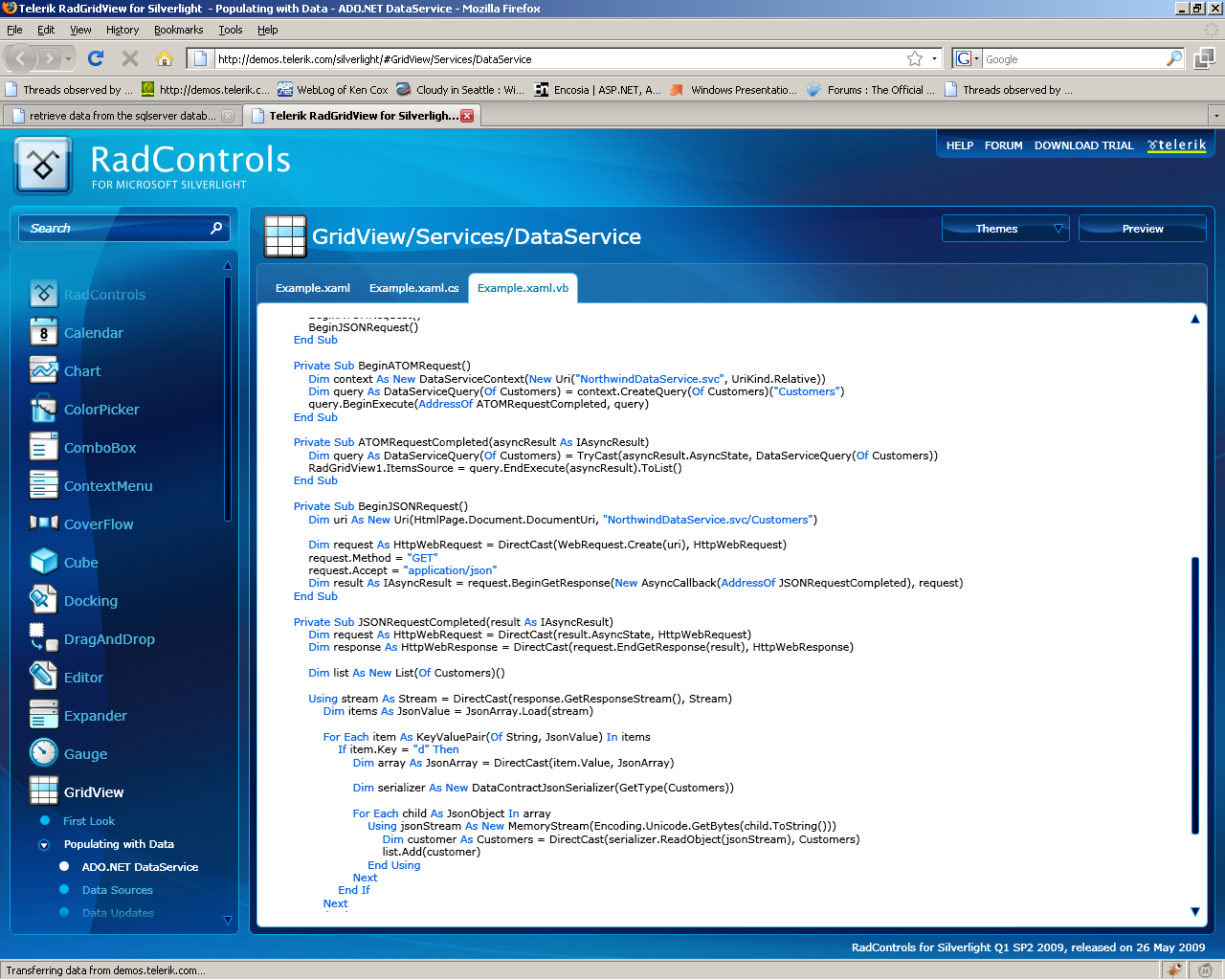 Hi, I am new to silverlight...I want to retrieve data from the sqlserver database and show it in radgridview.Maybe this is simple but i want it.Quick reply is really appreciable.