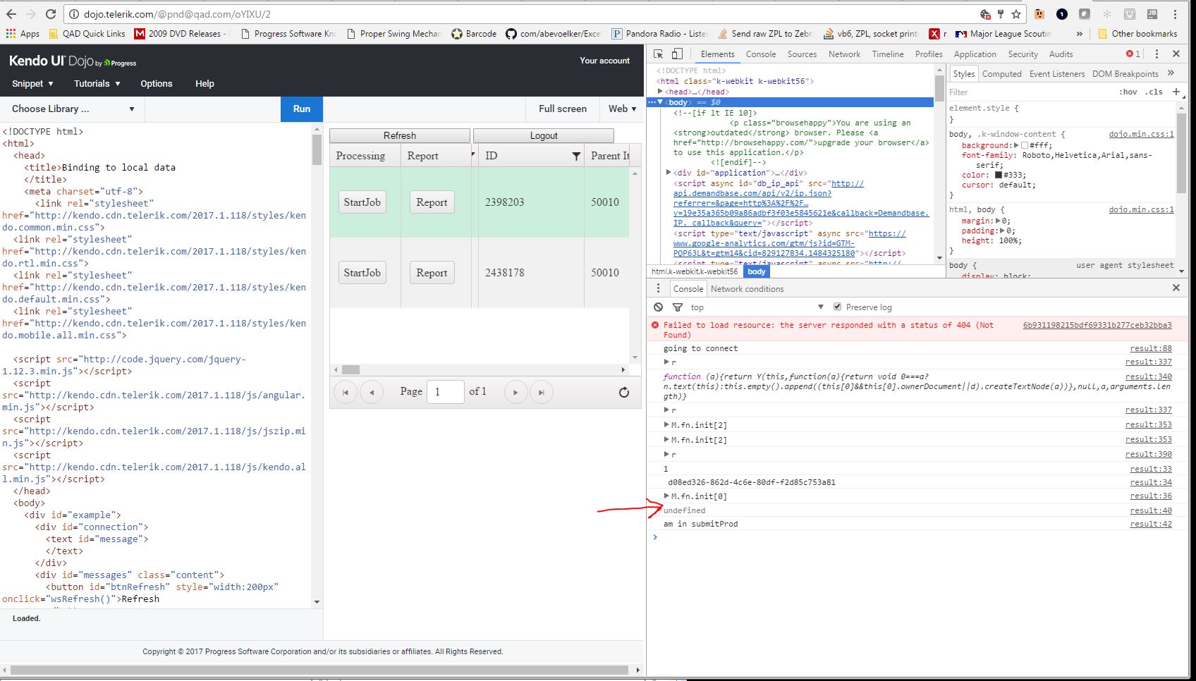 I'm trying to get the dataSource dataItem for a grid value after I have brought up a custom popup screen. I've created a button on the custom popup, and I'm passing the UID to the click event and I can get the row of the grid, however I'm trying to get the datasource dataItem and have had no luck. I've create the following dojo: http://dojo.telerik.com/@pnd@qad.com/oYIXU/2