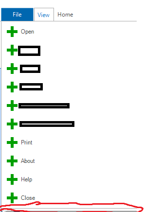 this.radRibbonBar1.ExitButton.Visibility = ElementVisibility.Collapsed;this.radRibbonBar1.OptionsButton.Visibility = ElementVisibility.Collapsed;